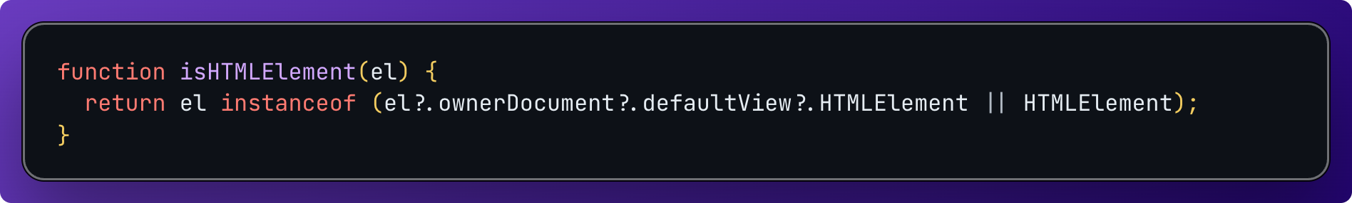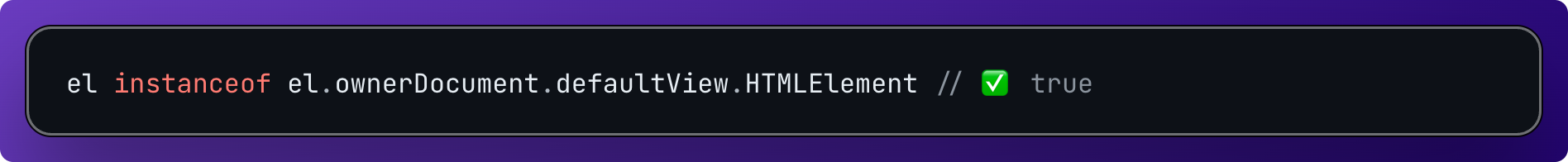 이를 활용하면 다중 전역 객체 환경에서도 안전한 HTMLElement 타입 검사 함수를 작성해 사용할 수 있다.