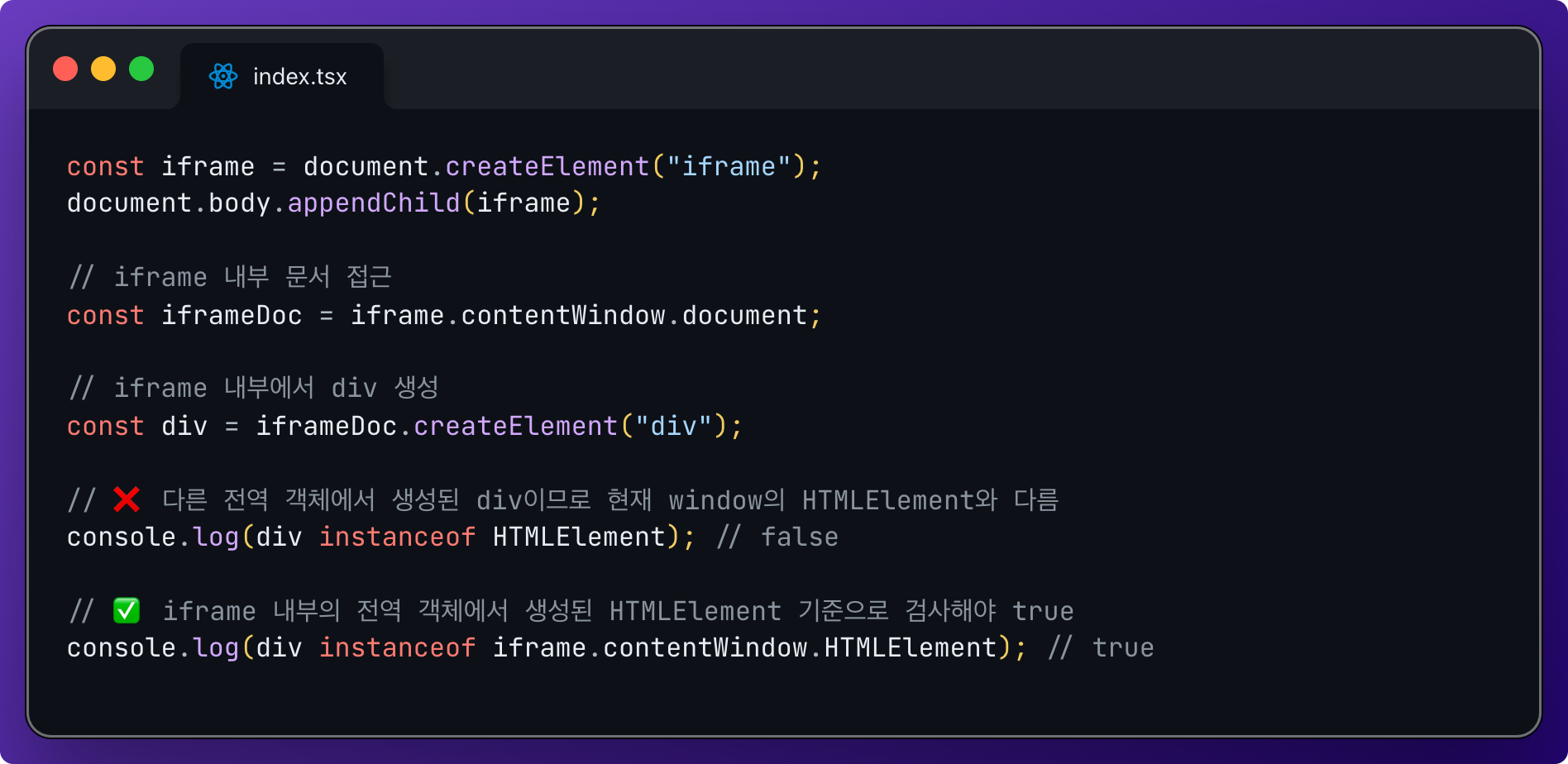 ❗ iframe에서 instanceof HTMLElement가 실패하는 이유