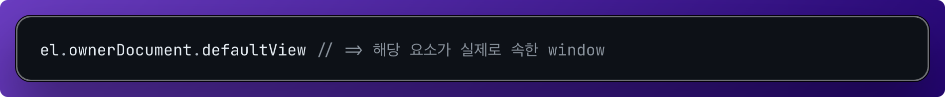 이걸 통해 해당 요소가 속한 문서(Document)를 알 수 있고, 그 문서가 속한 전역 객체는 다음처럼 접근할 수 있다.